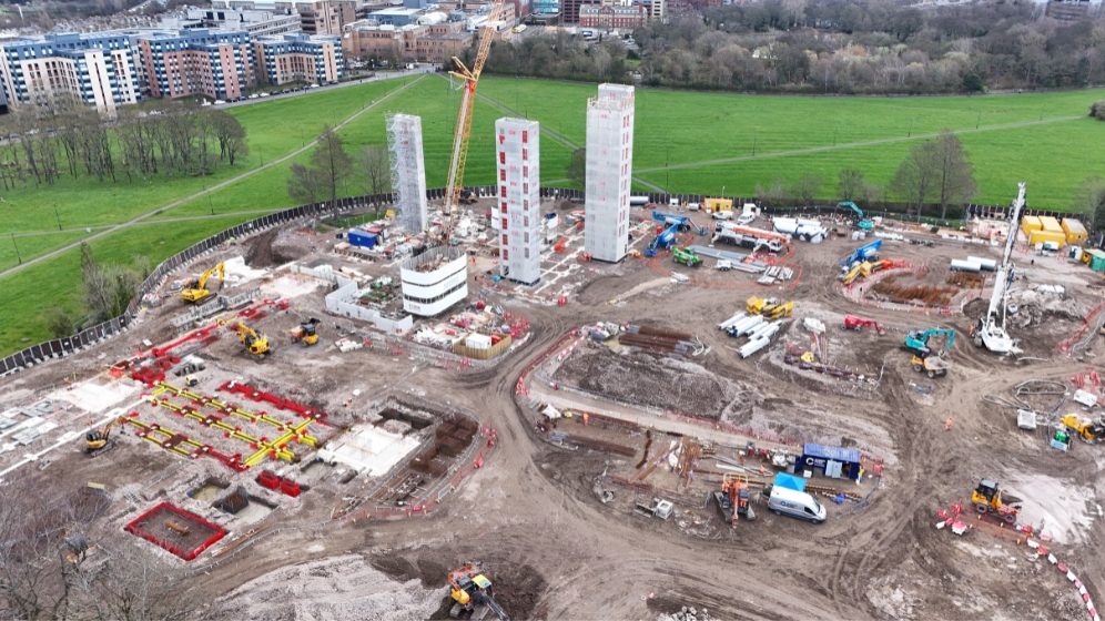 - construction has commenced, and the stairwell and lift cores in the first building have now been installed